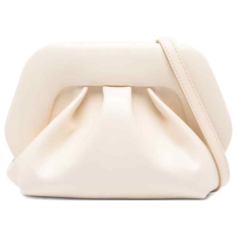 cream gathered detail detachable shoulder strap This piece comes complete with a protective dust bag. Bios small vegan leather clutch. Size and Fit – DEPTH 10 cm. HEIGHT 12 cm. WIDTH 20 cm.