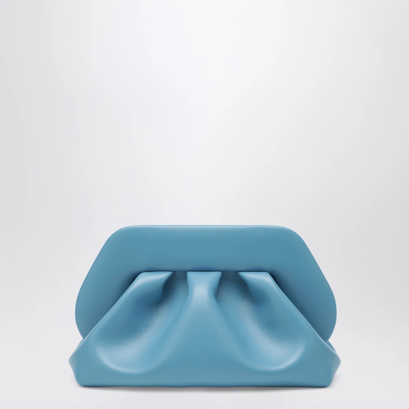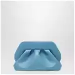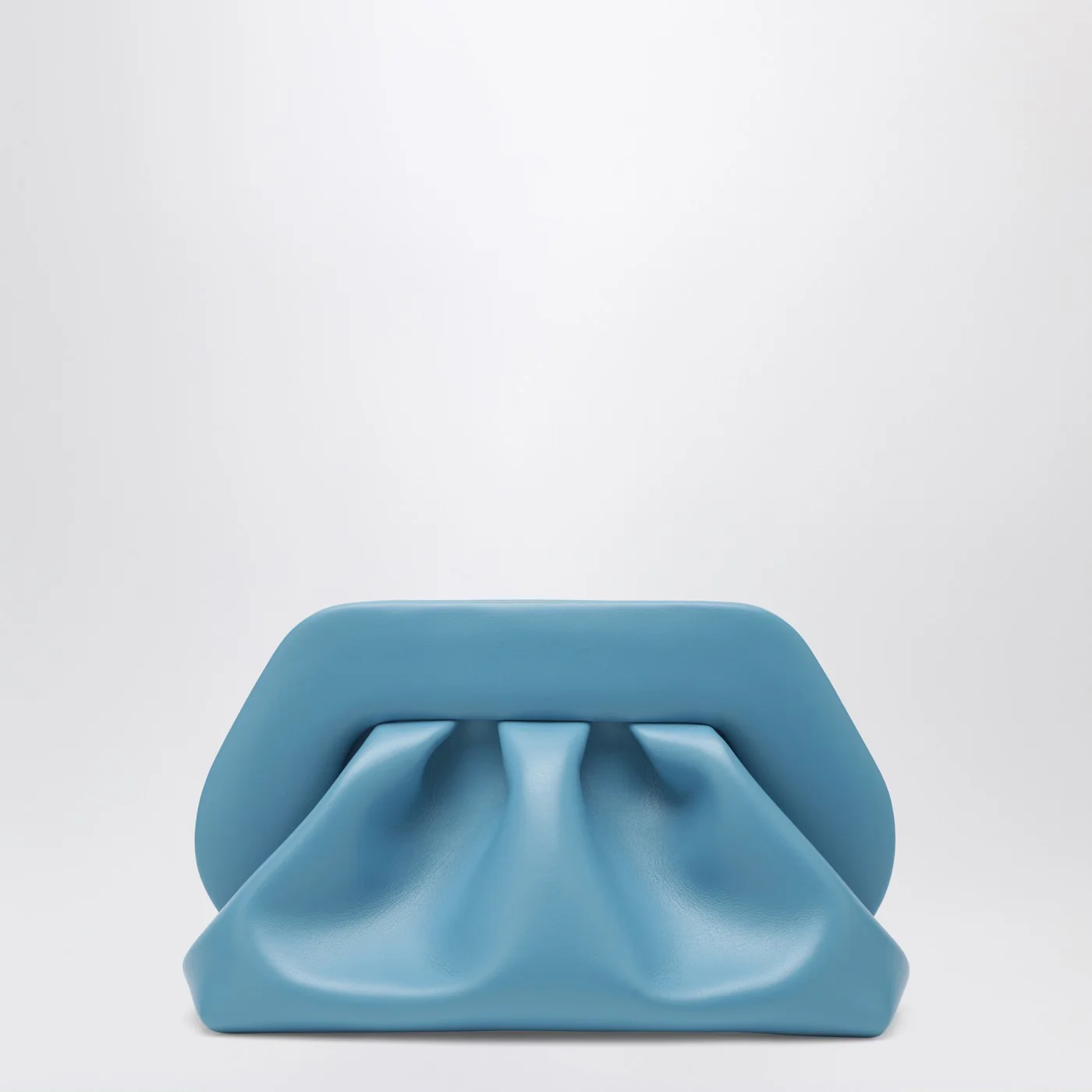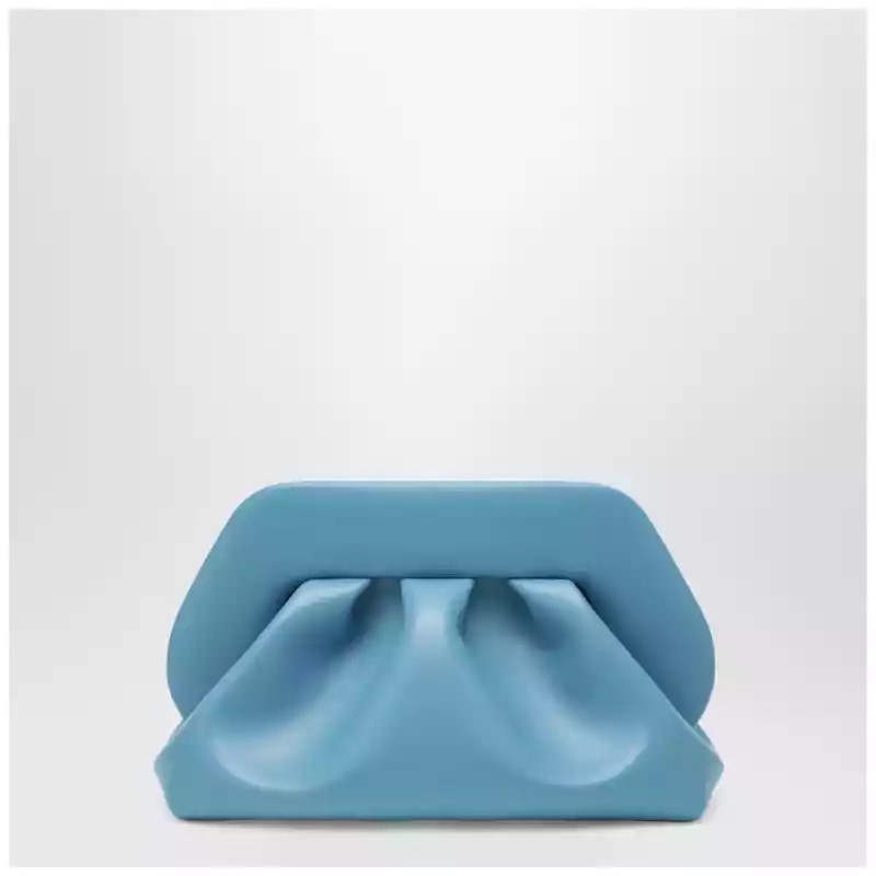 Clutch by THEMOIR in light blue eco leather Double magnetic closure Removable and adjustable shoulder strap Decorative ruching Fabric lining. Size and Fit – Width 27 cm x Height 17 cm x Depth 14 cm Adjustable shoulder strap length min 90 cm – max 105 cm