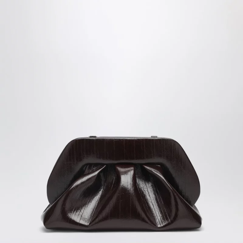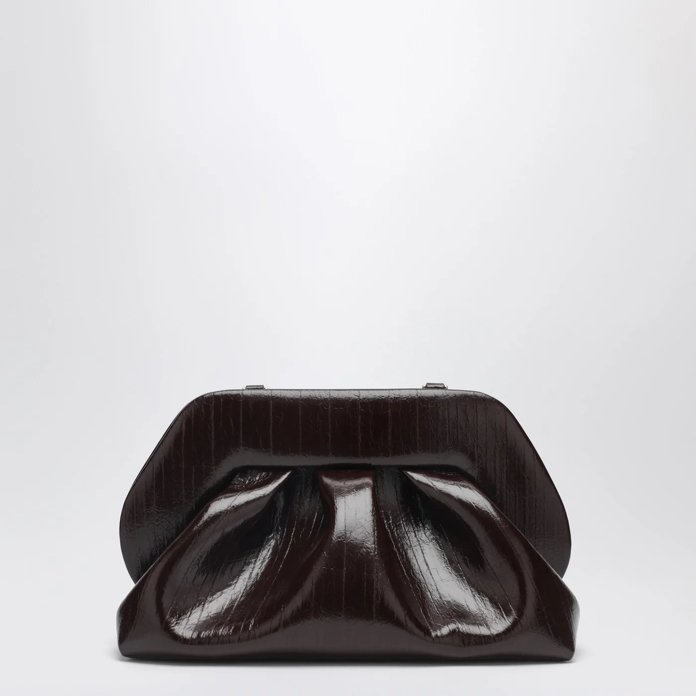 Clutch by THEMOIRÈ in chocolate brown striped-effect eco leather