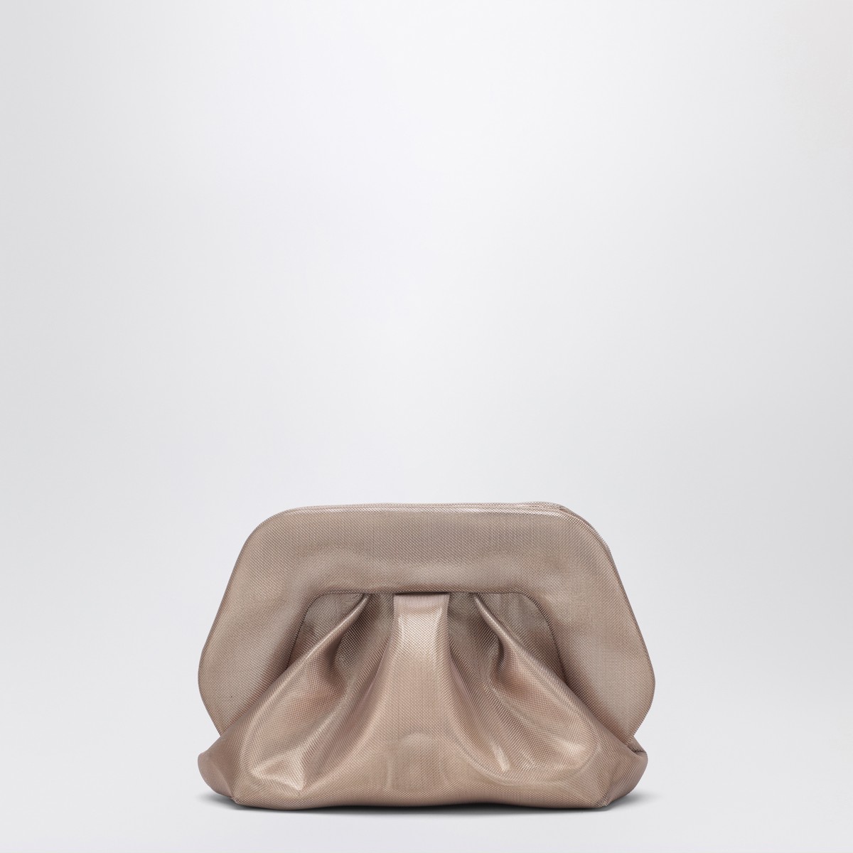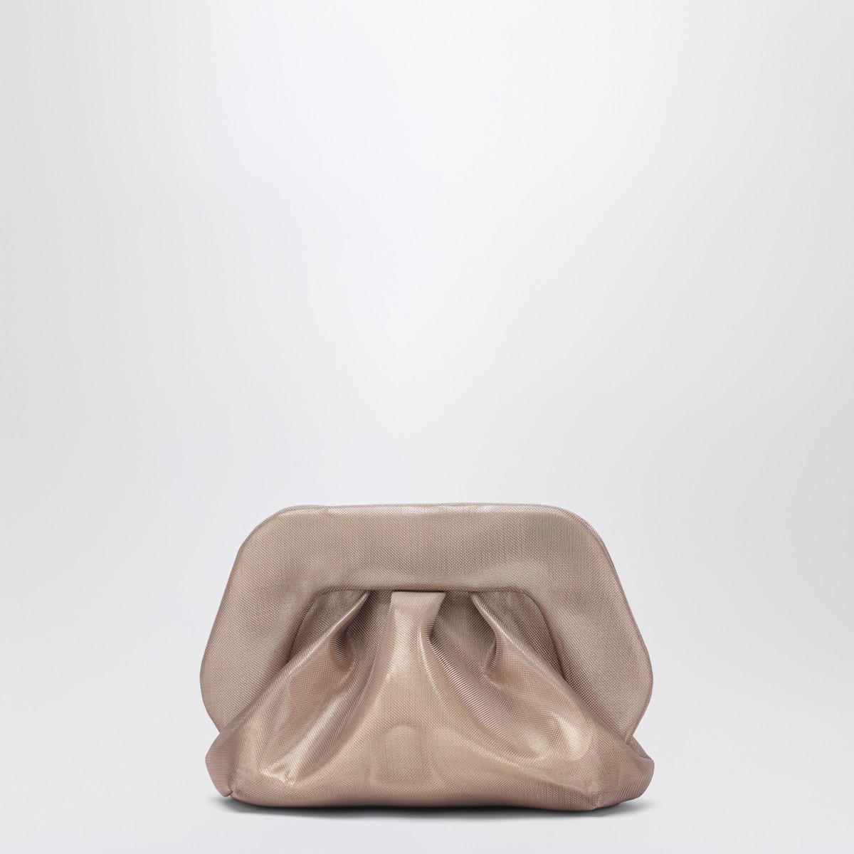 THEMOIRÈ clutch in gold eco leather with embossed texture, featuring double magnetic closure, removable and adjustable shoulder strap, decorative ruching and fabric lining.