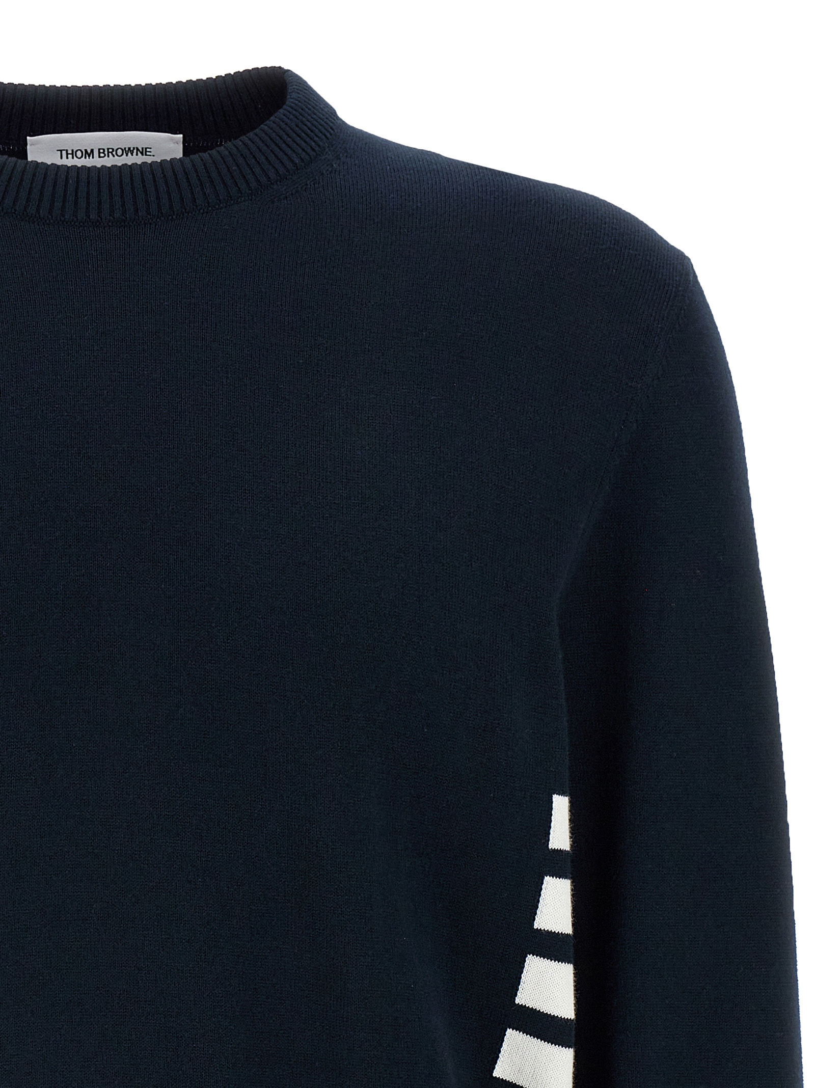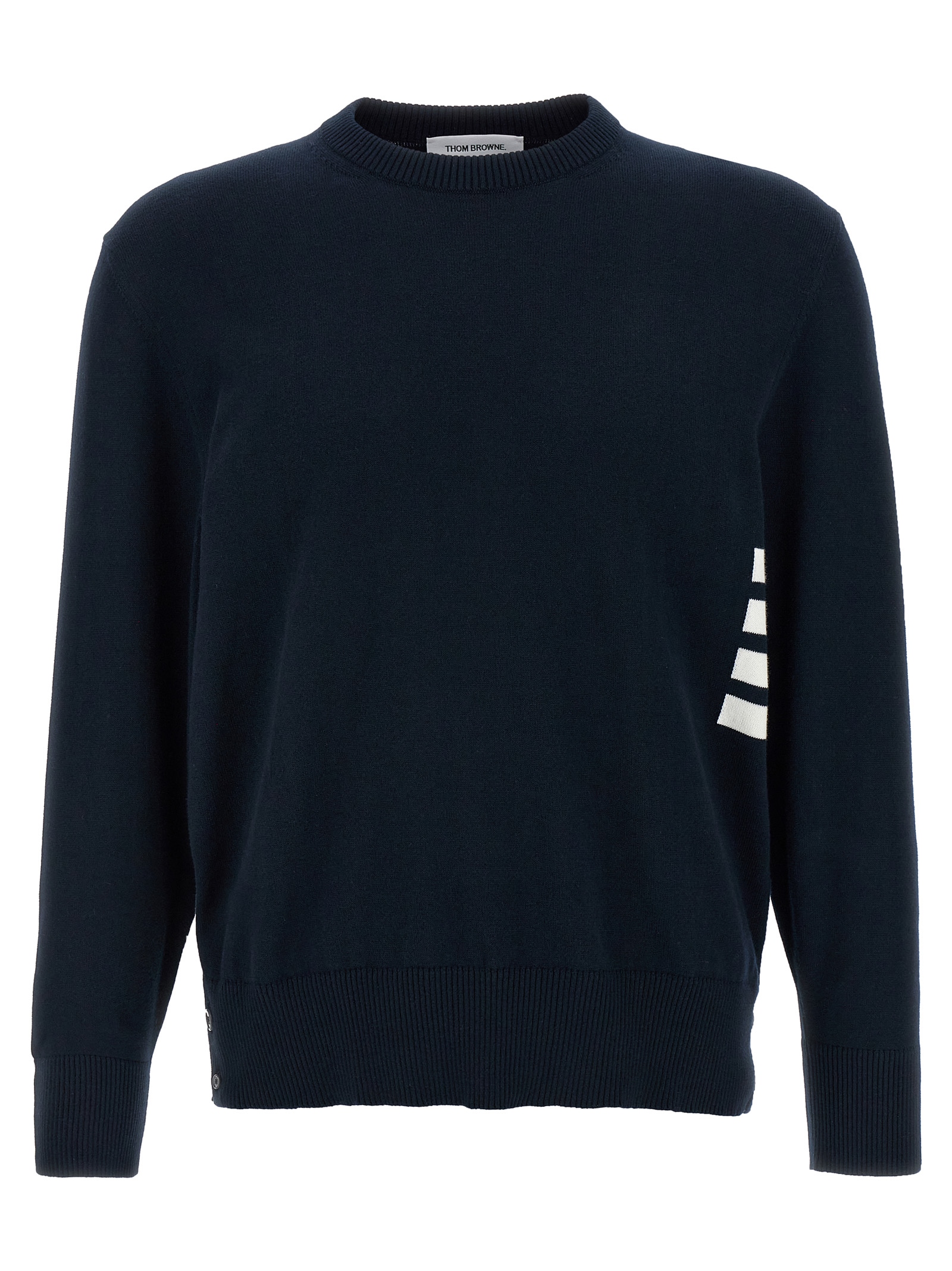 Cotton sweater with contrast jacquard logo ‘4 Bar’, crew neck, long cuffed sleeves, side splits, and striped grosgrain details.