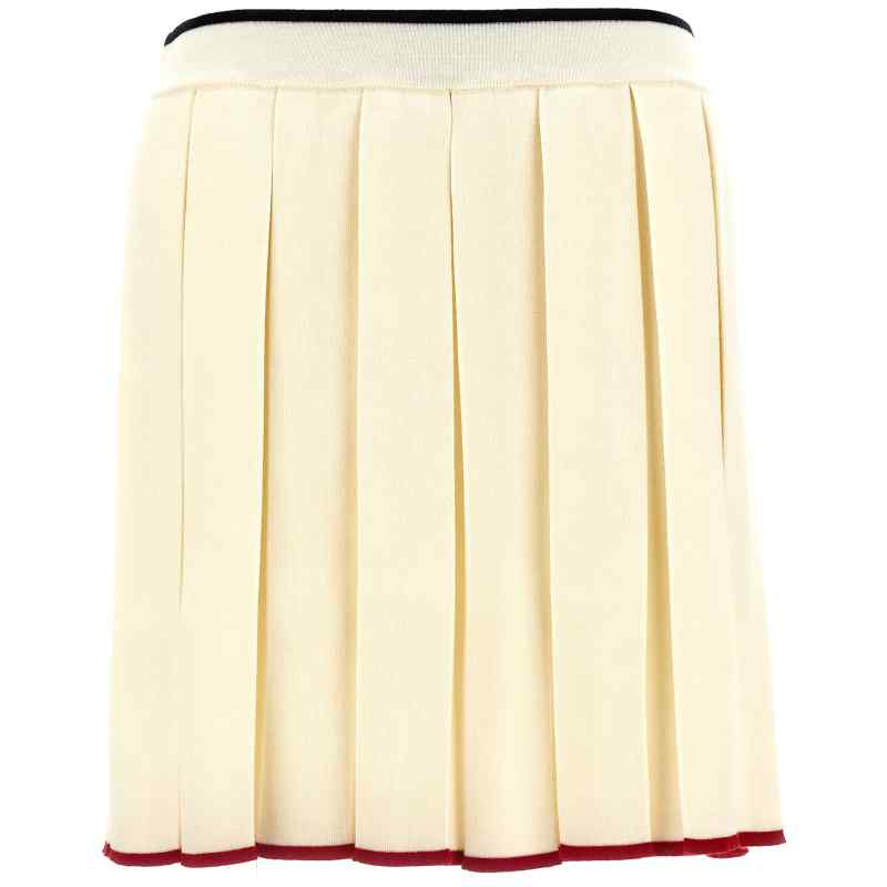 Pleated wool blend knit skirt with elastic waistband, And contrasting edges. Size and Fit – true to size fit