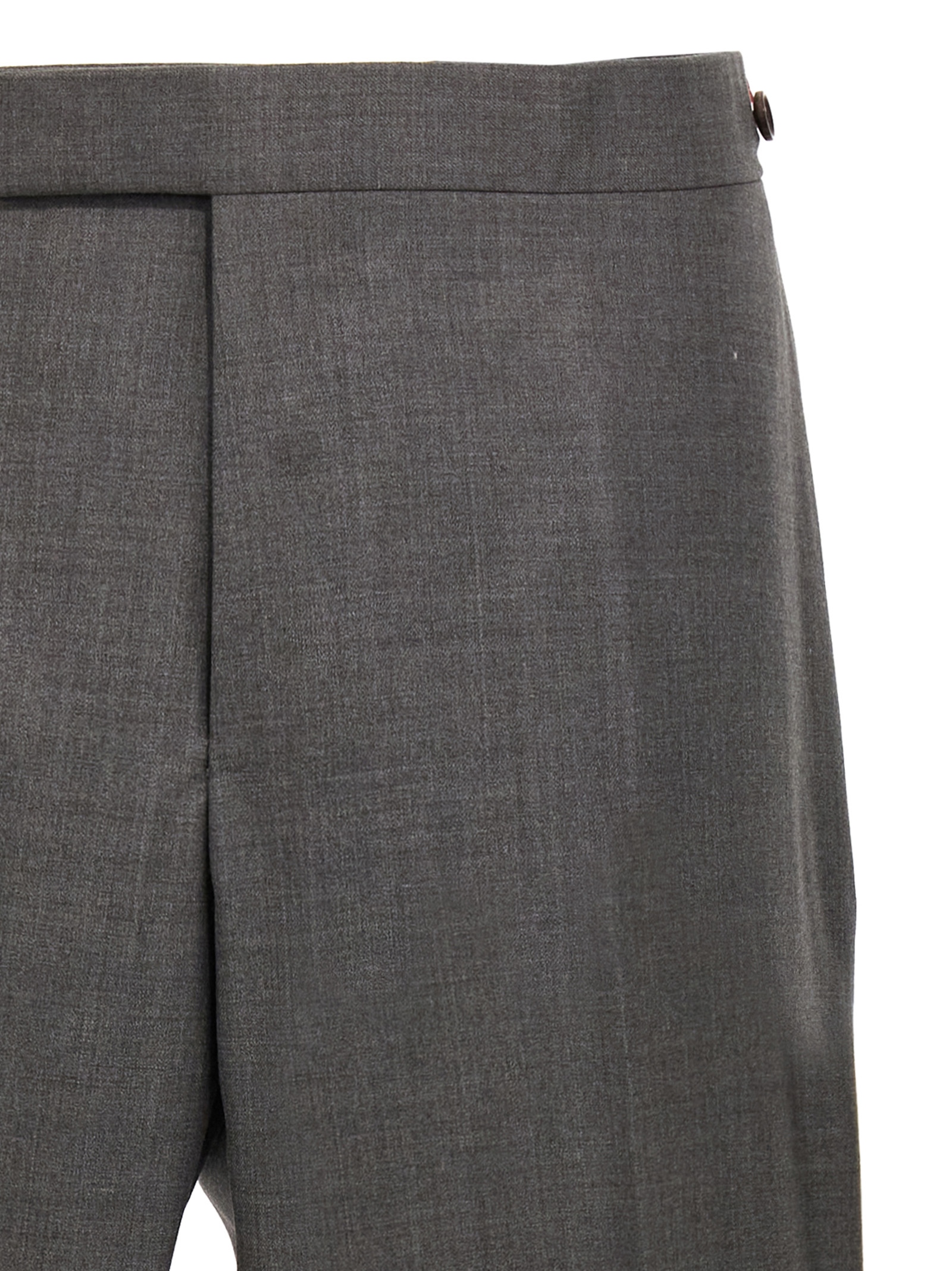Super 1120s wool twill trousers, ‘RWB’ details, button and hook closure, pockets, low waist.