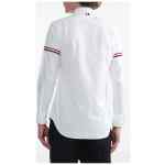 white cotton RWB stripe signature grosgrain loop tab logo patch to the front classic collar front button fastening long sleeves curved hem Rwb cotton shirt