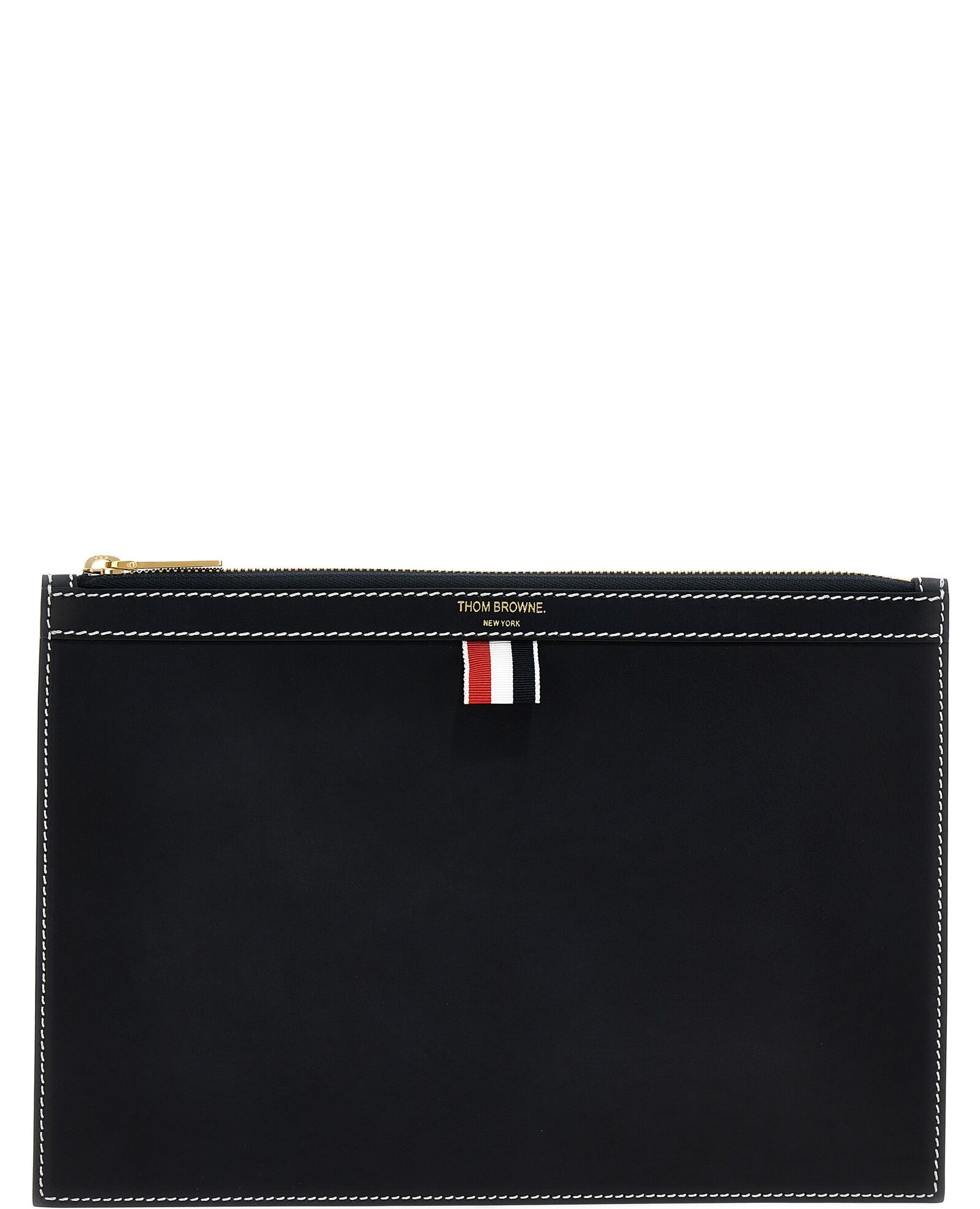 Small document pouch in leather with zipper closure, and logo detail.