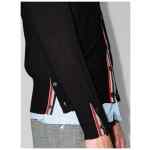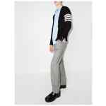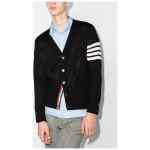navy blue merino front button fastening signature 4-Bar stripe side slits long sleeves RWB stripe Wool cardigan