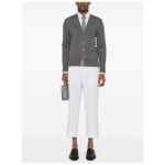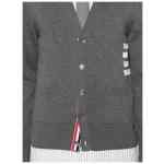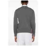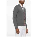 medium grey cotton fine knit signature 4-Bar stripe signature grosgrain loop tab signature grosgrain side tabs ribbed trim V-neck front button fastening long sleeves buttoned cuffs two side patch pockets straight hem 4Bar cotton cardigan