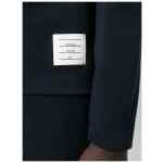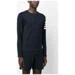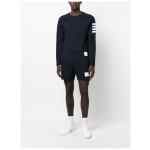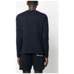 navy blue cotton signature 4-Bar stripe ribbed panelling logo patch to the front round neck long sleeves high-low hem Cotton t-shirt