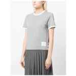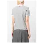 light grey cotton contrasting trim RWB stripe logo patch to the side crew neck side button fastening short sleeves asymmetric hem Cotton t-shirt