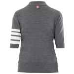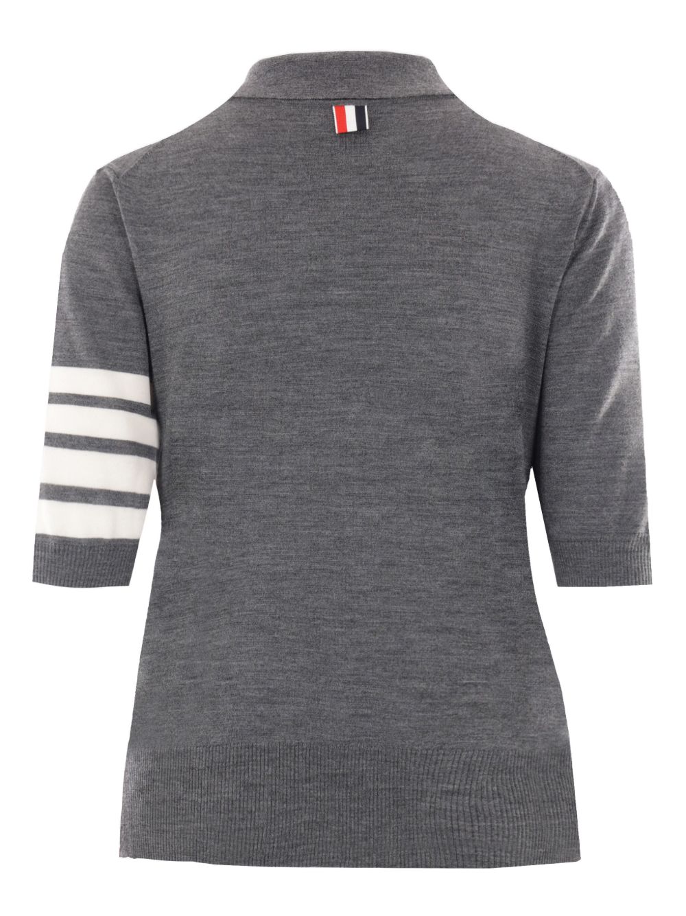grey virgin wool logo patch to the rear side stripe detailing polo collar front button placket three-quarter length sleeves straight hem Wool polo shirt