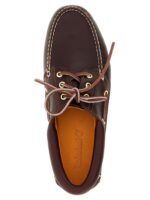 Timberland® premium leather ‘timberland® 3-eye lug’ boat shoe with raw leather lace closure, Side embossed logo, Padded collar, Contrast stitching, Preformed rubber sole. Size and Fit – US MEN