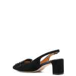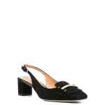 black buckle-fastening slingback strap low block heel branded leather insole leather outsole Leather slingback pumps