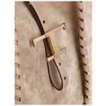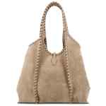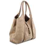 mocha beige braided trim gold-tone logo plaque two top handles foldover press-stud fastening main compartment Medium leather tote bag