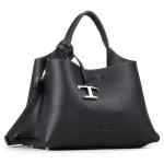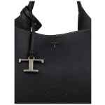 logo-pendant leather tote bag from TOD’S featuring black, leather, grained texture, debossed logo to the front, logo pendant, decorative stitching, hook fastening, adjustable detachable shoulder strap, single top handle, partitioned compartment, internal zip-fastening pocket and metal feet. Leather micro tote bag