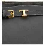 black top handle adjustable buckle gold-tone hardware zip-fastening bar feet Small leather handbag