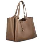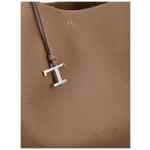 brown grained leather top handles T-logo charm detail tonal topstitching open top Medium leather tote bag