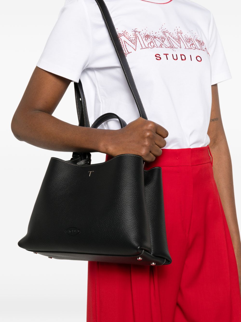 black top handle silver-tone hardware internal zip-fastening pocket This piece comes complete with a protective dust bag. Small leather tote bag