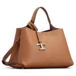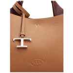 logo-pendant leather tote bag from TOD’S featuring camel brown, leather, grained texture, debossed logo to the front, logo pendant, hook fastening, adjustable detachable shoulder strap, single top handle, partitioned compartment, internal zip-fastening pocket and metal feet. Leather micro tote bag