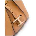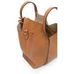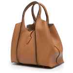 luggage brown calf leather pebbled texture gold-tone logo plaque trapeze silhouette two rounded top handles adjustable detachable shoulder strap Mini leather tote bag