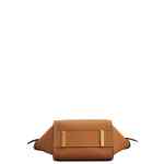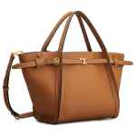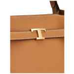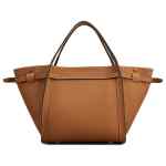brown top handle buckle strap gold-tone hardware open top pebble grain finish Small leather tote bag