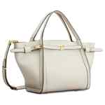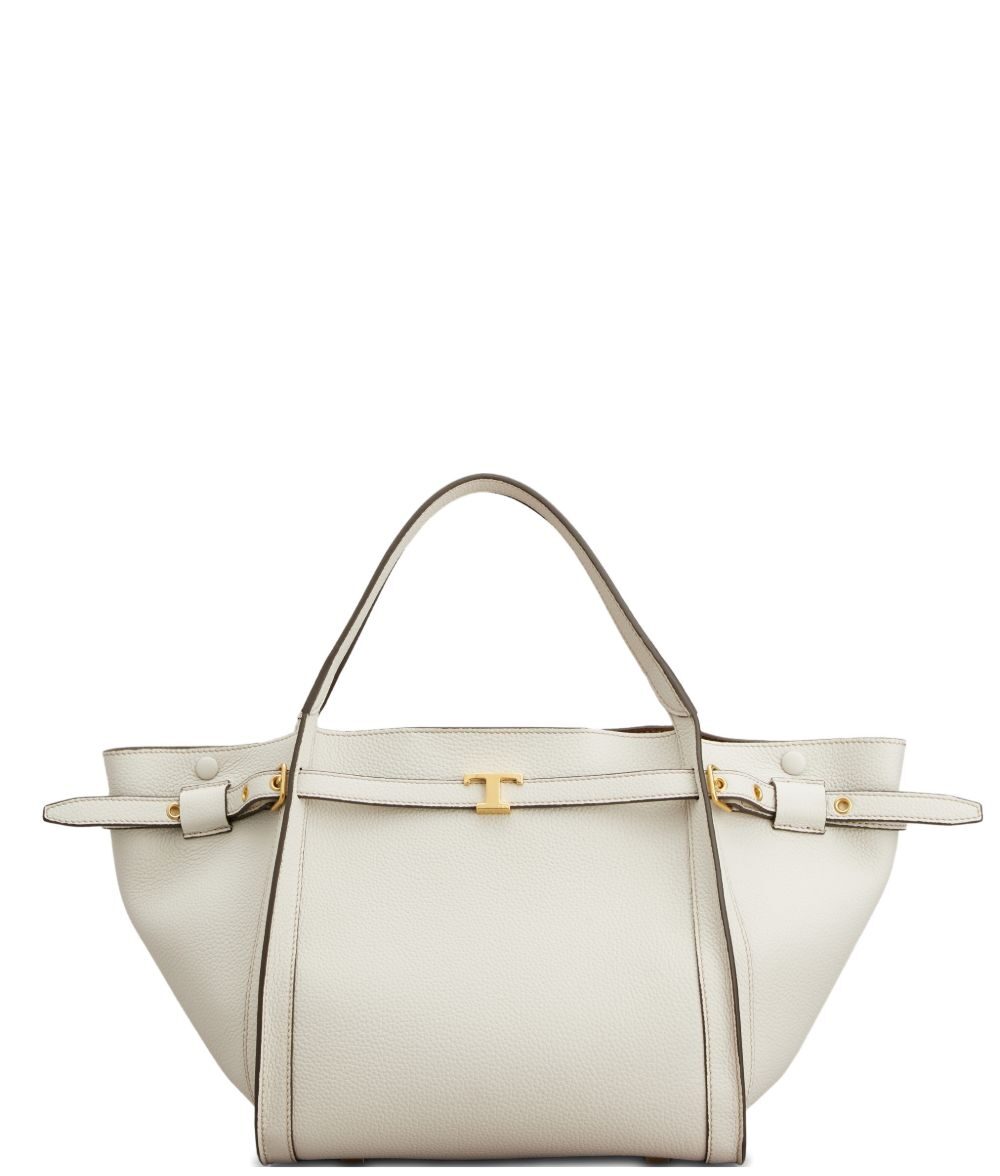 white top handles gold-tone hardware detachable shoulder strap side straps logo plaque Small leather tote bag