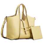 yellow top handle detachable adjustable shoulder strap removable pouch gold-tone hardware press-stud fastening Mini leather tote bag