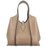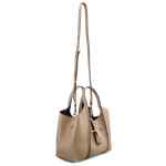 beige grain finish detachable pouch top handle detachable shoulder strap T buckle detail Mini leather tote bag
