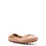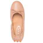 Gommino ballerina shoes from TOD’S featuring rose pink, calf leather, signature Gommino sole, bow detailing, round toe and slip-on style. Bubble leather ballet flats