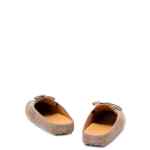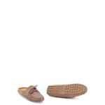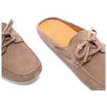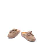 beige side laces slip-on style round toe flat sole Suede leather sabot-loafers