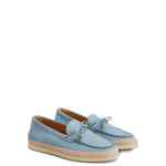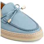 light blue braided trim tie detail gold-tone hardware flat sole rubber pebble detailing Suede leather loafers