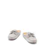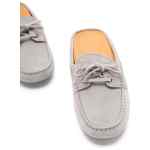 grey gold-tone eyelets slip-on style rubber pebbled sole round toe Suede leather sabot-loafers
