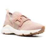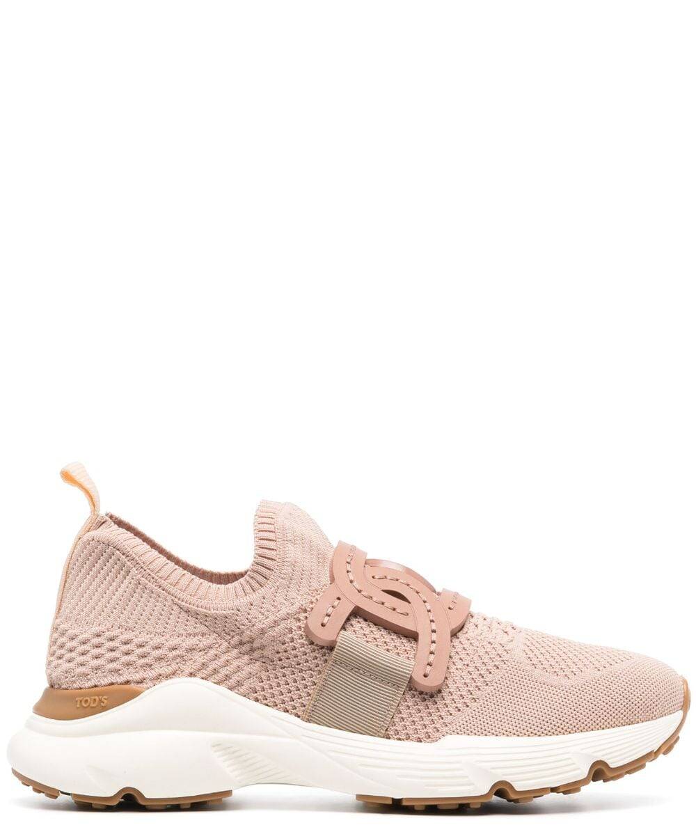 light pink knitted upper chainmail detailing slip-on style pull-tab at the heel branded insole flat rubber sole Kate sneakers