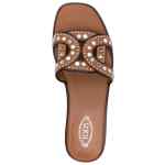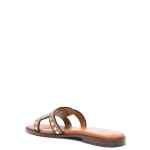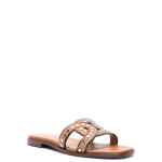 camel brown calf leather smooth grain stud detailing slip-on style square open toe branded leather insole flat leather sole Leather flat sandals