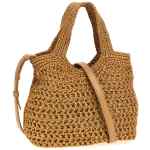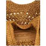 Small viscose raffia shopping bag with handcrafted crochet processing, Leather oval with embossed logo, Double fixed handle, Adjustable and removable leather shoulder strap. Size and Fit – W 25 x h 21 x d 12 cm