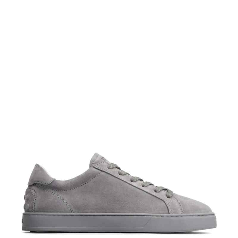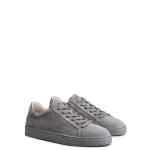 medium grey calf suede panelled design logo-print tongue embossed logo to the rear embossed detail round toe front lace-up fastening branded insole flat rubber sole Leahter sneakers. Size and Fit – Heel height 2cm