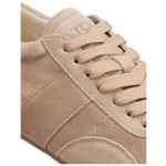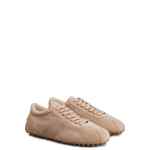 light pink panelled design lace-up fastening rubber sole visible stitching embossed logo Suede leather sneakers