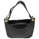 black adjustable shoulder strap gold-tone hardware internal zip pocket press-stud fastening grained texture Tara small leather crossbody bag