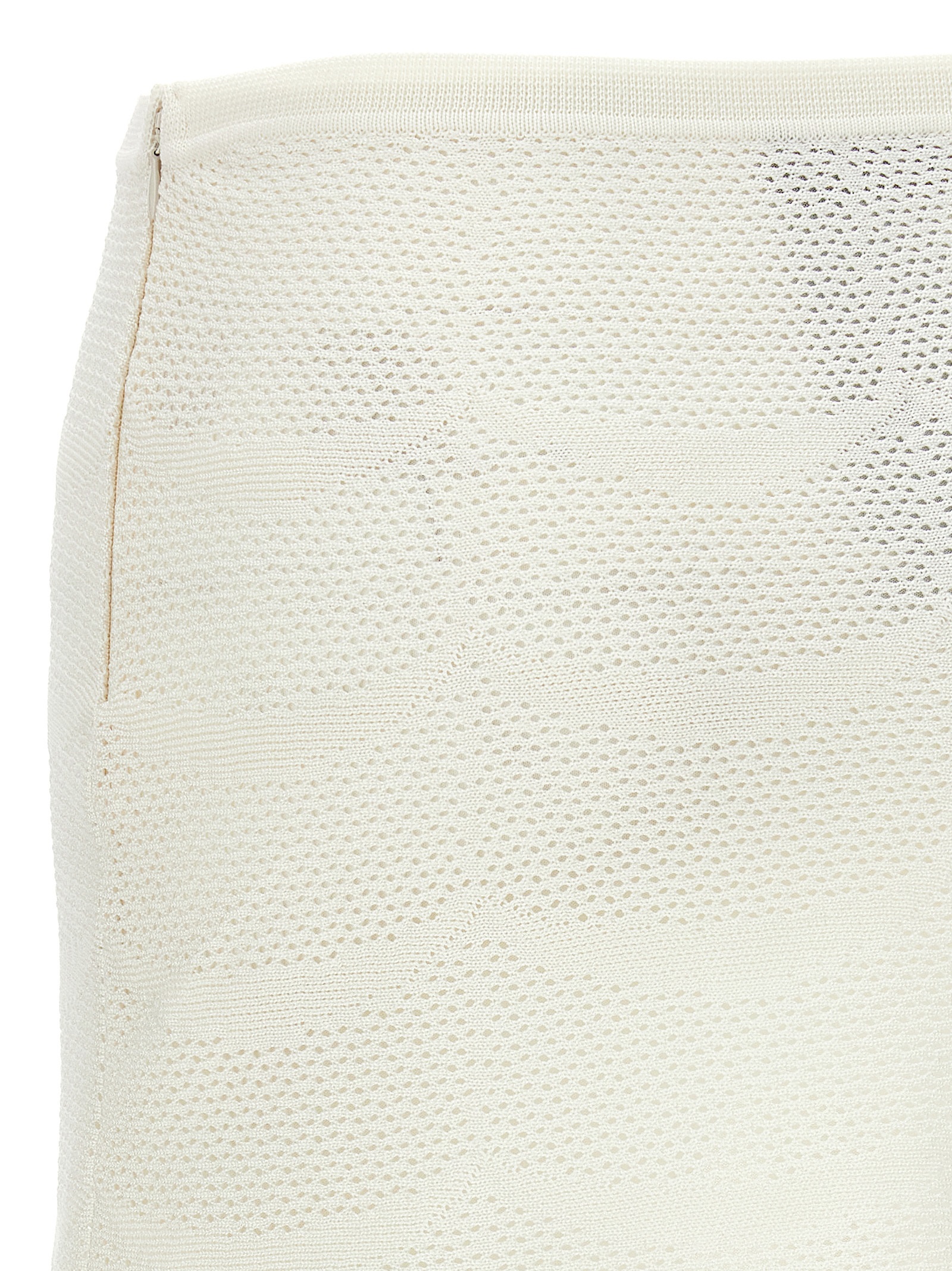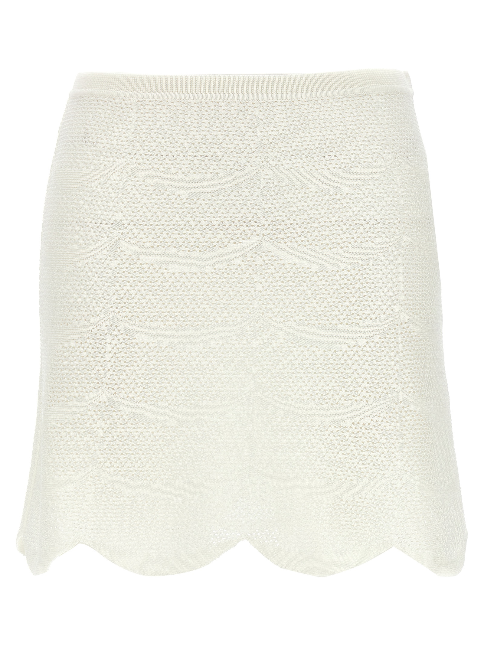 Openwork mini skirt in cotton and silk blend crocheted, elastic waistband.
