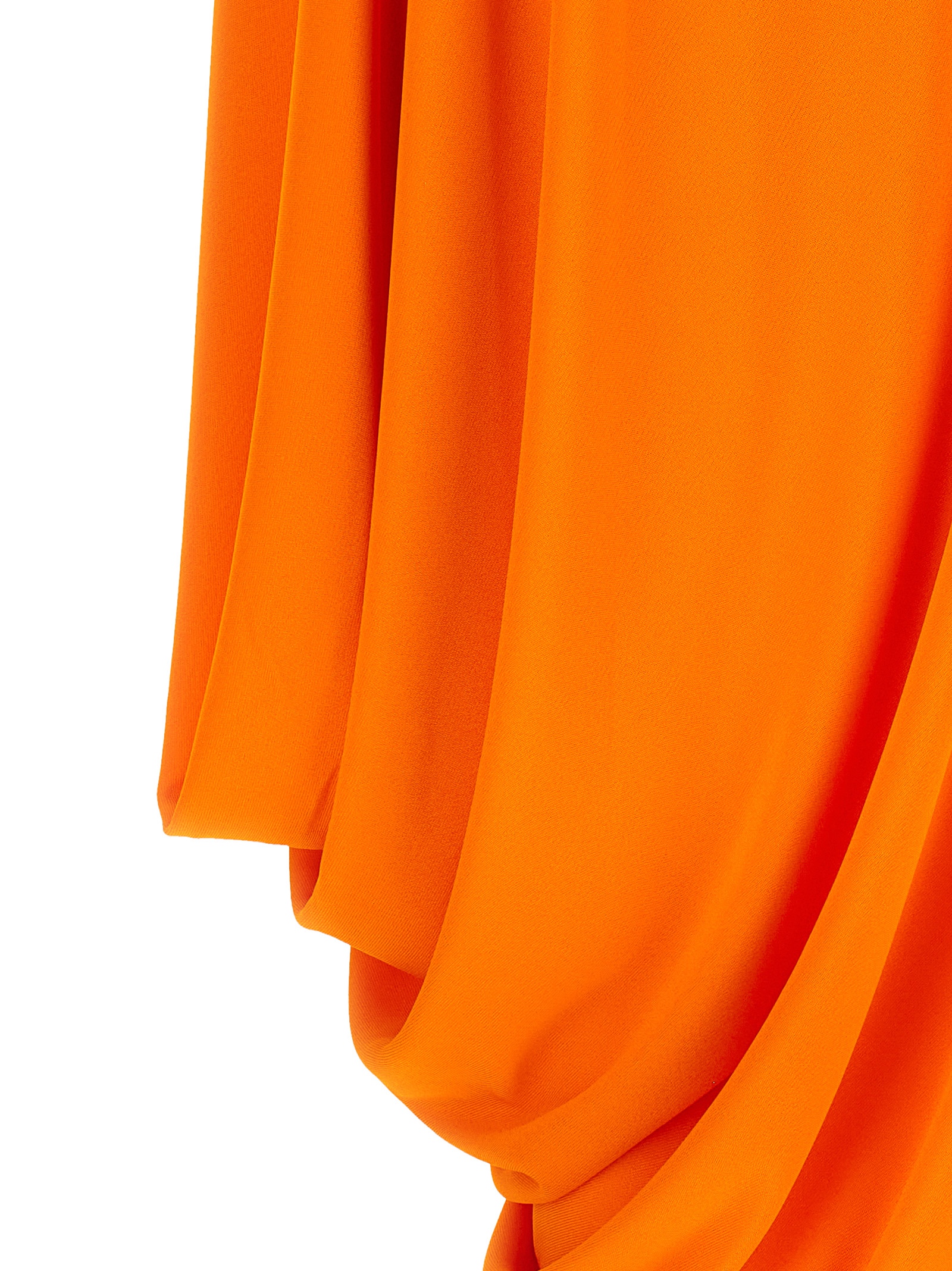 ‘Impossible Asymmetric cap’ top in double jersey crepe, 3D machining, crew neck, draped model with one side completely open and the other closed, asymmetrical, back closure with hidden zip.