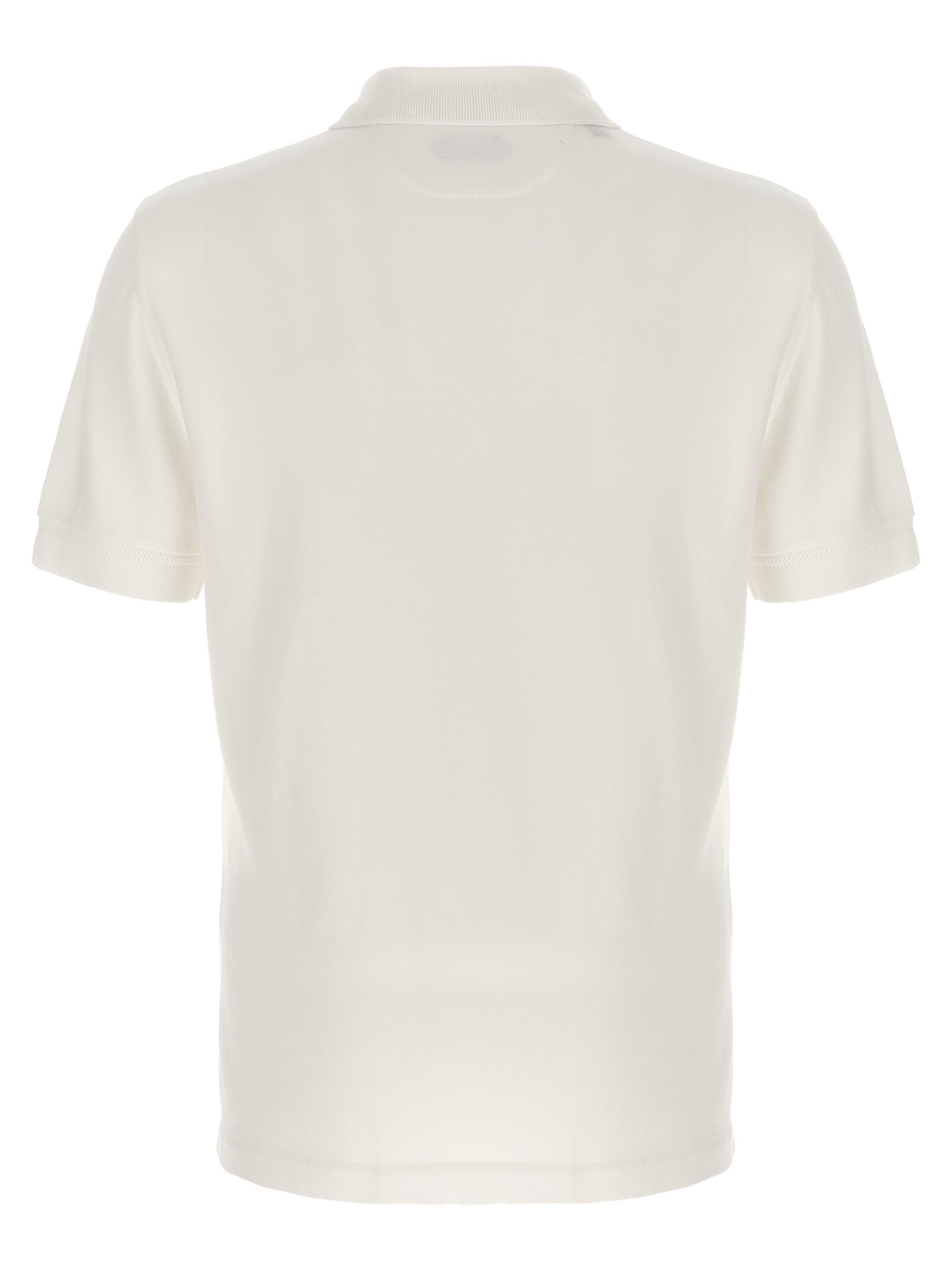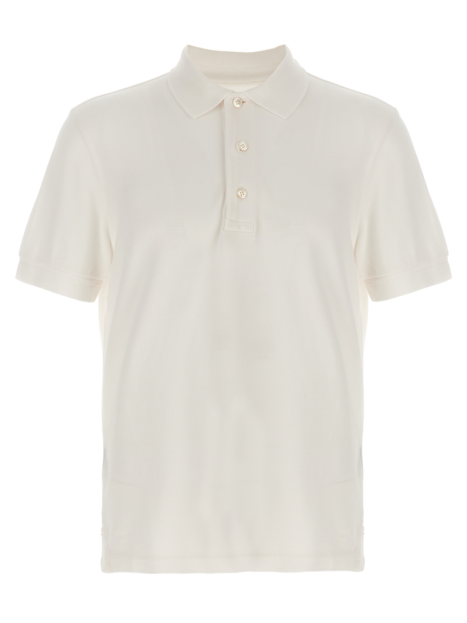 Cotton and lyocell blend polo shirt with piqué pattern, tone-on-tone logo embroidery on the front, collar and buttons, side slits, and short sleeves.