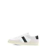 white cream stripe panelled design lace-up fastening round toe Leather sneakers