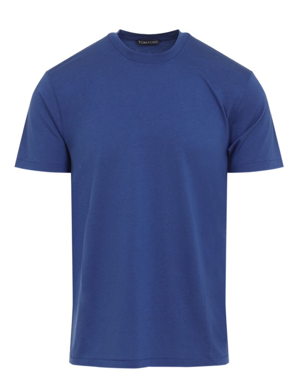 prussian blue crew neck short sleeves straight hem Cotton blend t-shirt