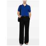 royal blue piqué knit short sleeves point collar Cotton blend polo shirt
