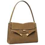 tobacco brown suede shoulder strap gold-tone hardware flap top This piece comes complete with a protective dust bag. Lee Radziwill suede leather shoulder bag