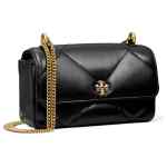 black nappa leather diamond quilting logo plaque foldover top with magnetic fastening chain-link shoulder strap internal slip pocket Kira Diamond mini leather shoulder bag