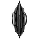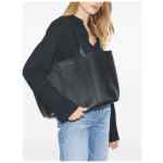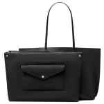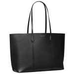 black embossed logo detail dual shoulder straps open top design structured silhouette Perry medium leather tote