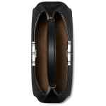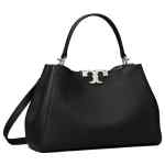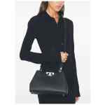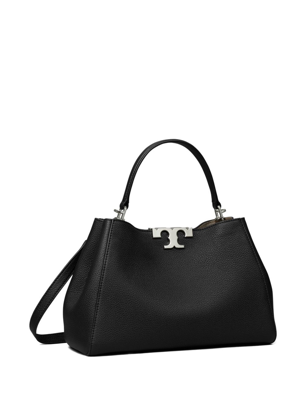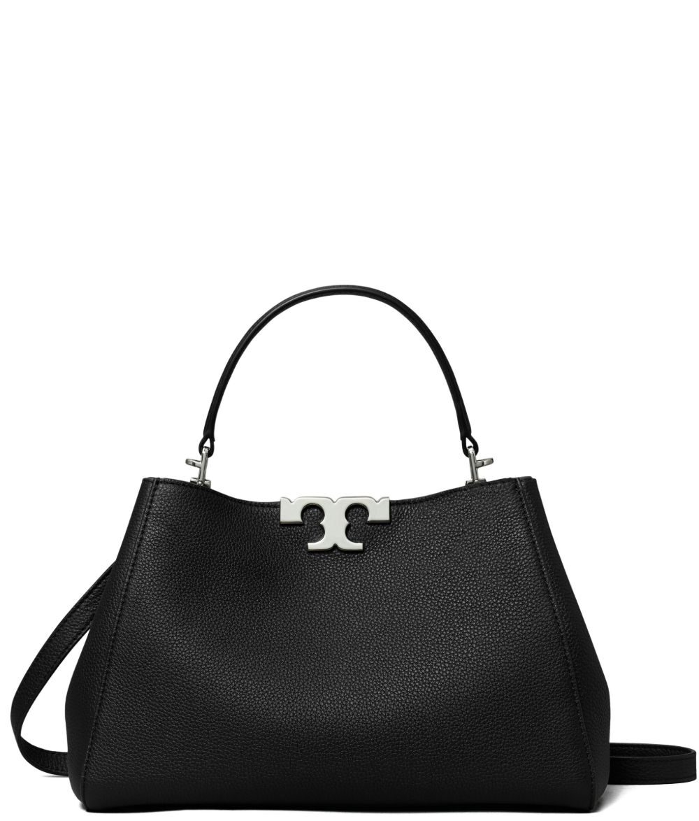 black, leather, top handle, detachable shoulder strap, silver-tone hardware, logo detail, magnetic closure. Eleanor medium leather satchel bag