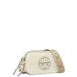 beige top zip fastening adjustable detachable shoulder strap signature Double T motif internal slip pocket Miller mini leather crossbody bag