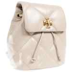 cream beige quilted gold-tone hardware adjustable chain straps drawstring detail Kira Diamond small leather backpack