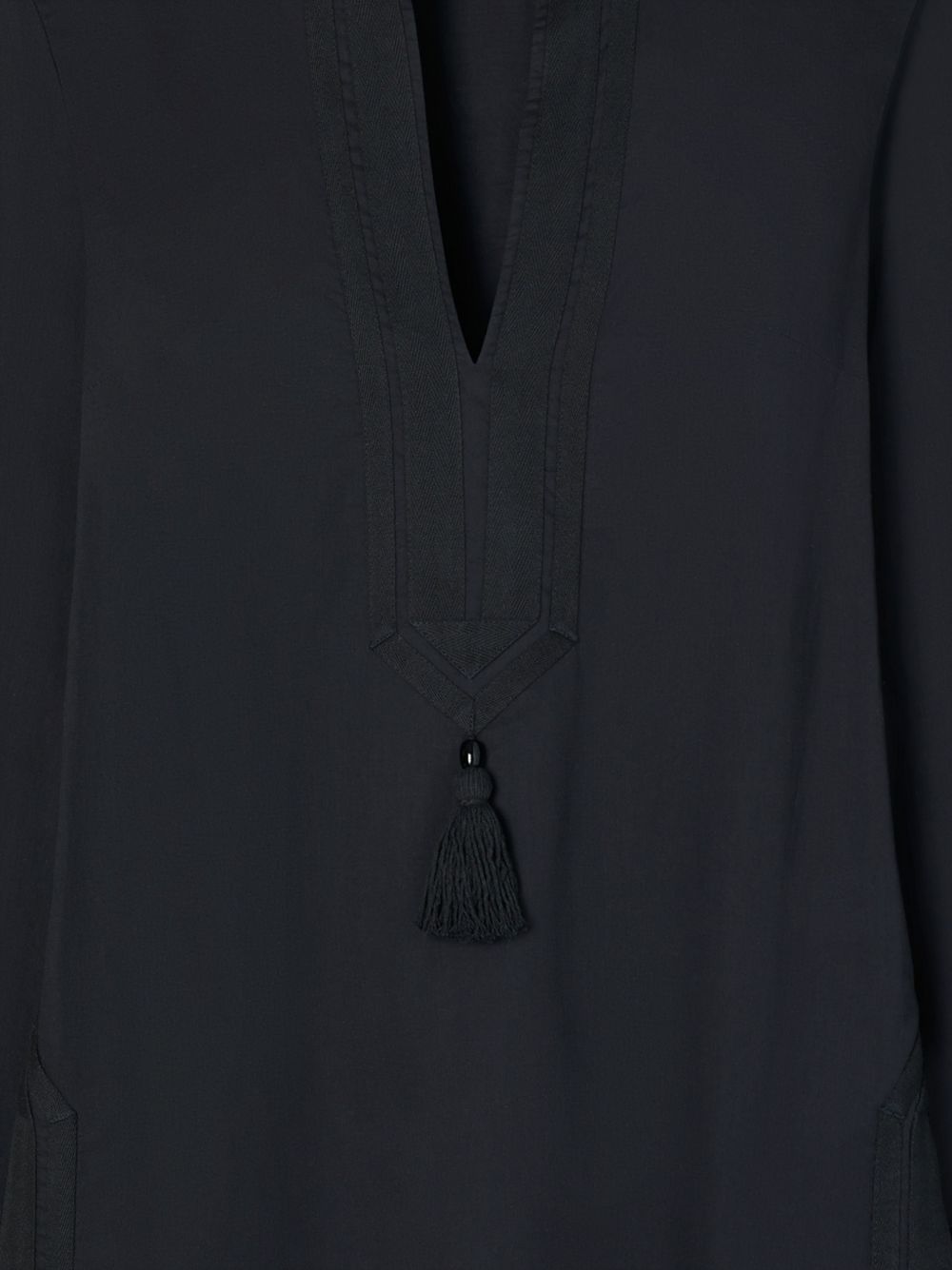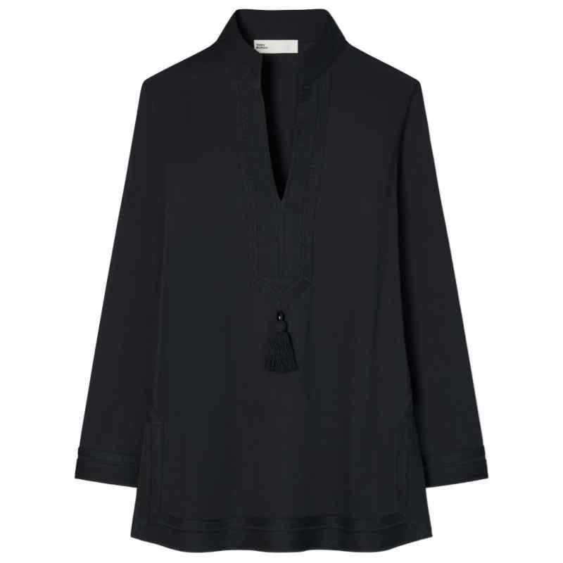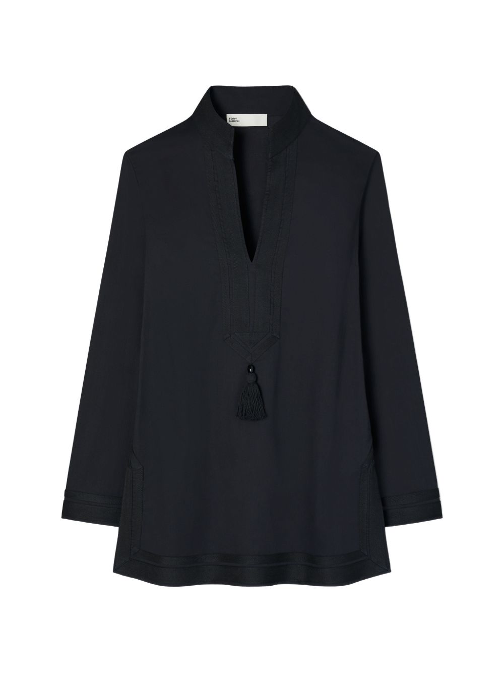 A brand signature. One of the first silhouettes we ever designed, inspired by Tory’s travels. In lightweight cotton voile, the tassel tunic is trimmed with herringbone twill at the collar, cuffs and hem. Universally flattering in a relaxed cut, it’s the epitome of understated glamour. model is 5’10” (178 cm) and is wearing a US size S 100% cotton length: 31″ (81 cm) hand wash or dry clean coverups style number 83308 Cotton tunic.